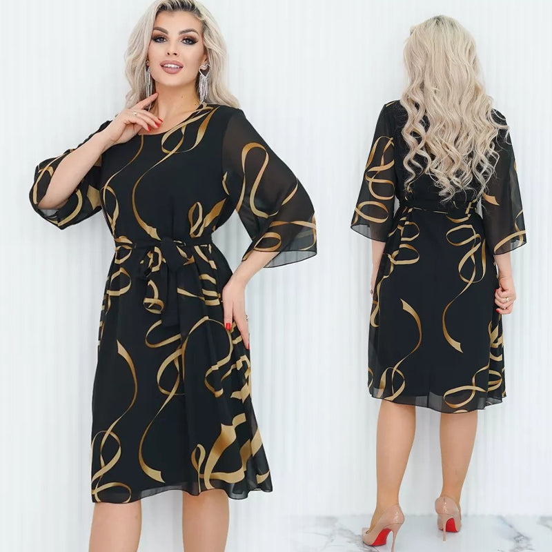 CLARISSA™|Vestido de cuello redondo con cinturón para mujer