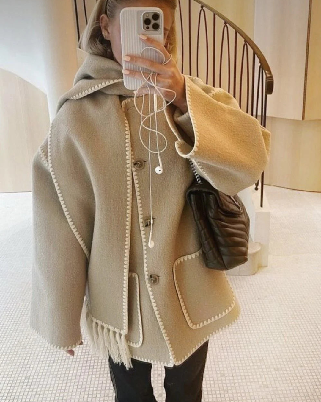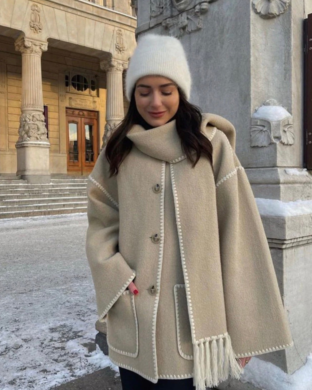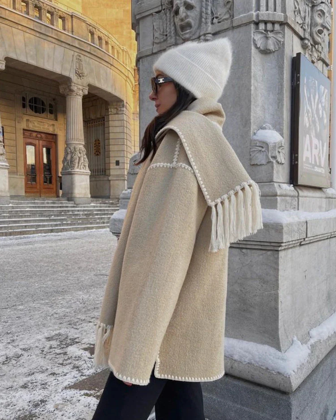 This Winter Scarf Coat combines the elegance of a tailored coat with the cozy warmth of a scarf. Designed to wrap you in effortless style, Mae is your secret to turning heads on frosty days. With its soft drape, luxe fabric, and versatile design, this coat elevates any look—whether you’re keeping it casual or dressing to impress.
