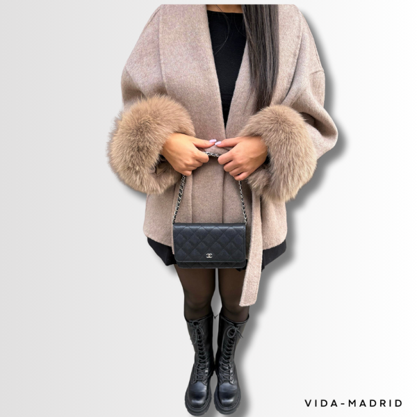 Fabricado con materiales de alta calidad, el Abrigo Sofía destaca por su diseño clásico y detalles sofisticados, como las mangas de piel sintética.