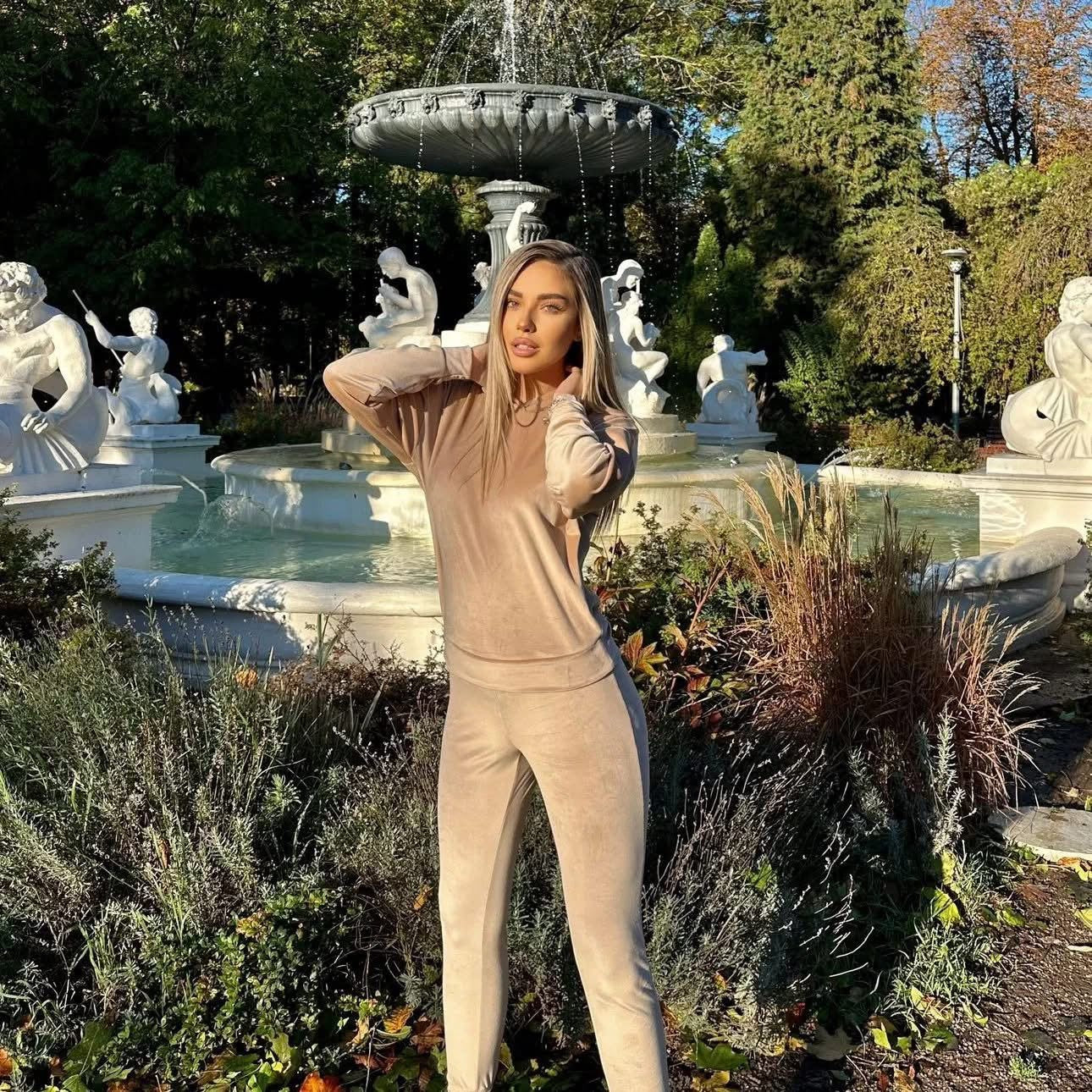 Trening Mellisa, casual, din doua piese cu pantaloni din catifea elastica de calitate premium.